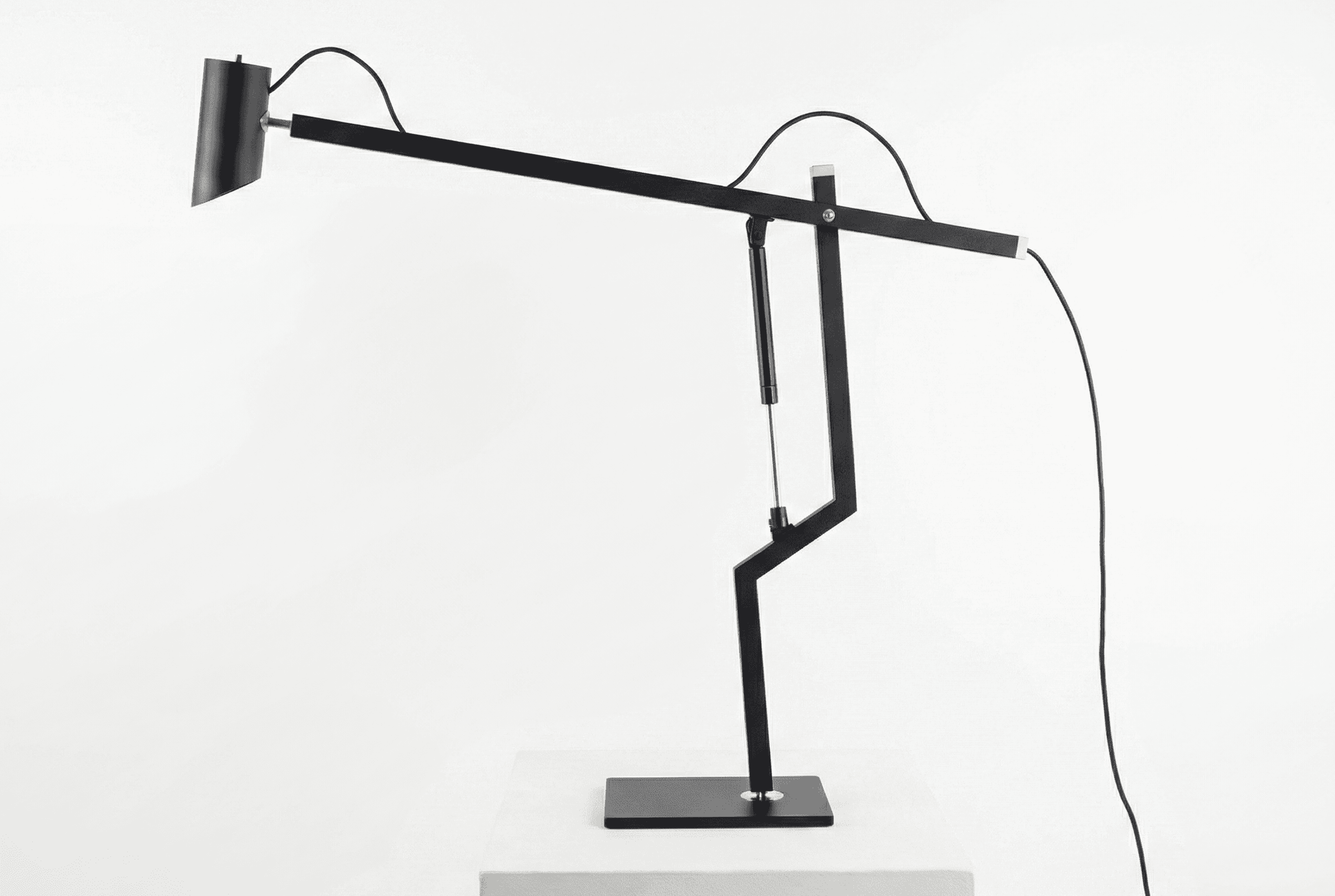 Hydraulic Piston Desk Lamp is a table lamp that uses a hydraulic piston to move and position light in space.