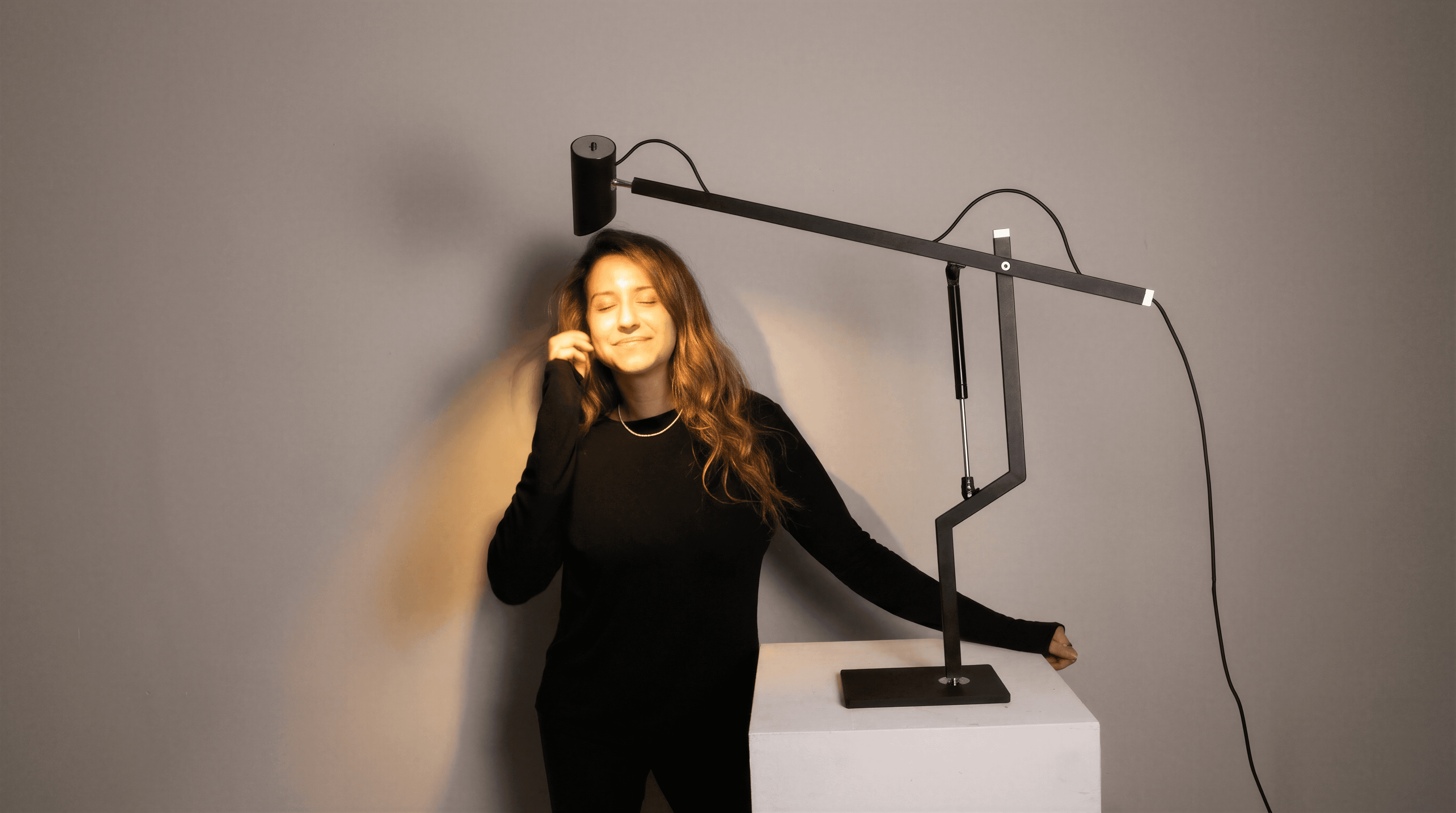 The heart of the lamp is an exposed hydraulic piston.The mechanism reveals the piston through its operation, making it a visible and active part of the structure. As it extends and compresses, the movement itself creates a smooth, effortless adjustment in space.